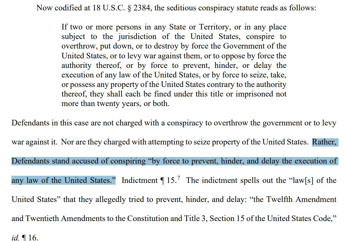 This entire statute is a loophole big enough to drive a convoy of trucks through! The government isn’t even charging the defendants with any sort of insurrection or planned overthrow of the government! This statute could apply to literally any political protest! Remember Portland’s famous “Wall of Moms” that was erected in order to keep federal agents from arresting violent protestors attacking a federal courthouse?