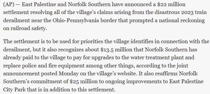 I hope the people of East Palestine negotiated for lifetime health insurance against cancer etc due to all the toxins they’ve been exposed to