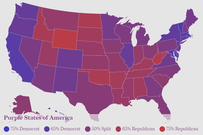 However, MTG’s suggestion for a state-level national divorce isn’t feasible for a number of reasons. First of all, states aren’t “red” or “blue”, they’re purple: