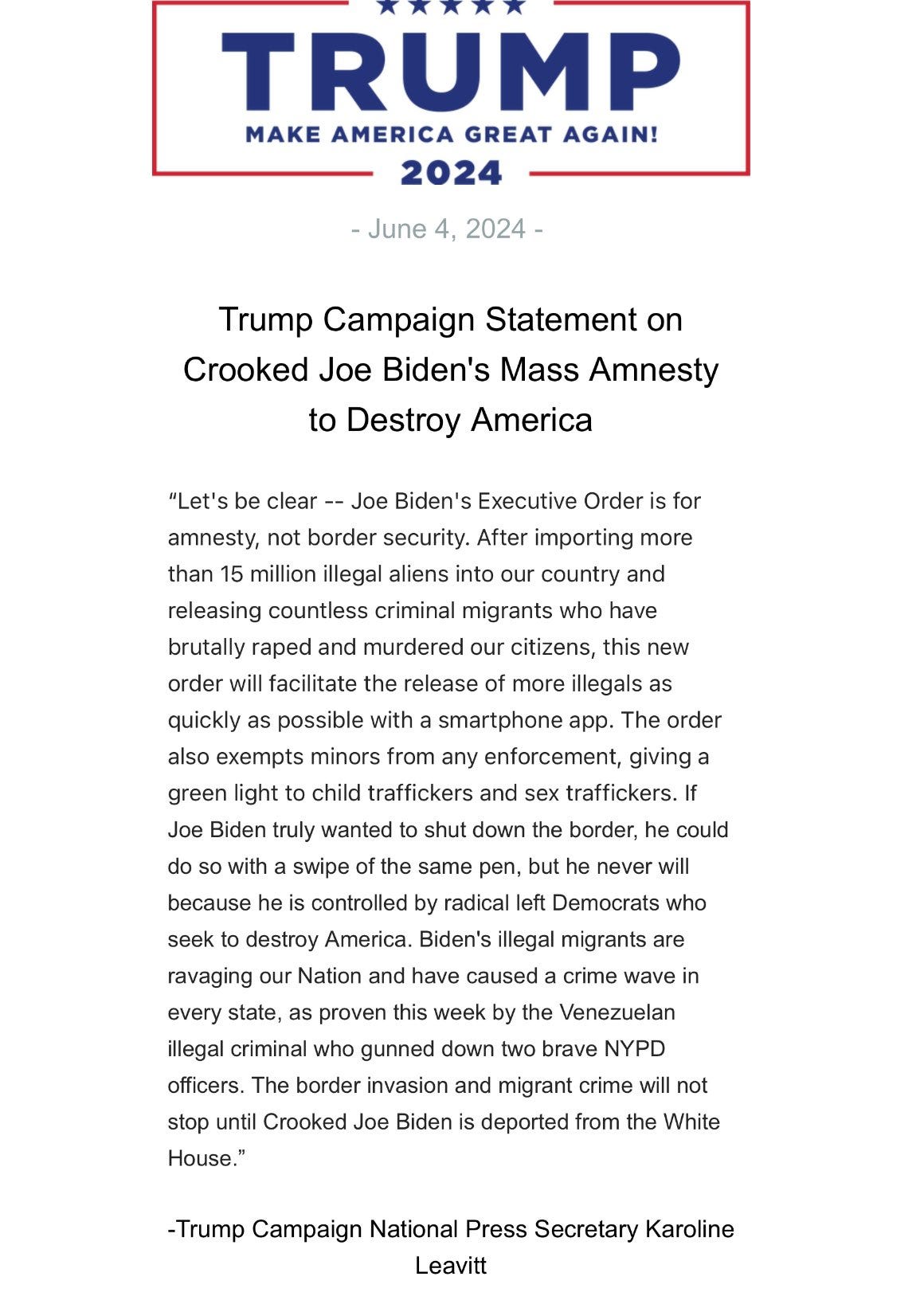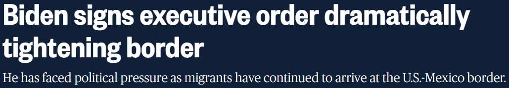 But as we got closer to the 2024 election, Democrats realized the border was a massive issue to the American people, and attempted to shift the blame to Republicans. (“They aren’t passing our border bill!”) Biden then spent a couple months claiming that he had no power to close the border and that Congress needed to act.