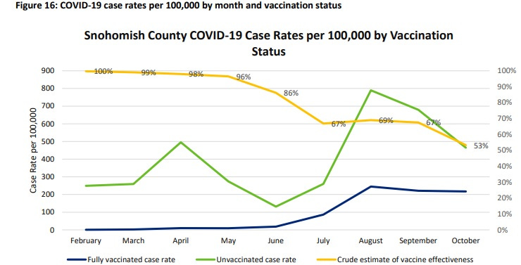And above all else it must be remembered that THIS ‘VACCINE’ doesn’t stop transmission! Snohomish County, WA runs a wonderful page showing the effectiveness of the vaccine on cases in the county. Let’s look!
