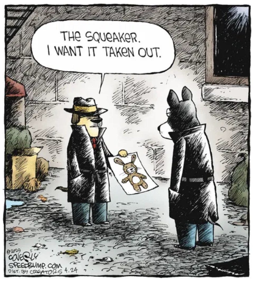 Either dog in this comic could be Spunky — she’s got a vendetta against squeakers.