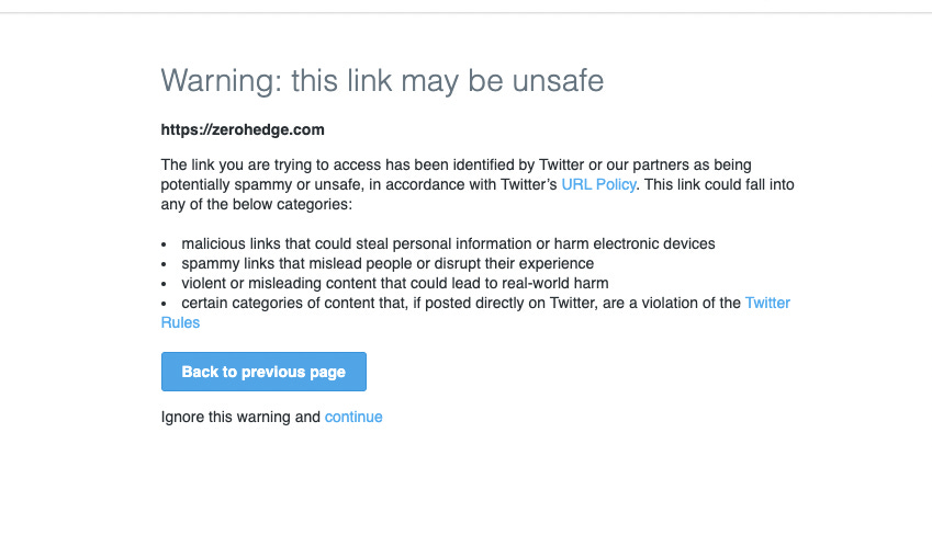Over at the Ministry of Truth, the list of wrongthinkers continues to grow, as now Twitter is issuing a ‘warning’ on links to Zerohedge.