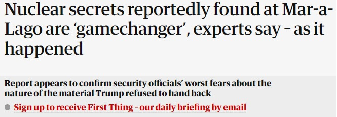 Rachel Maddow was on top of this story, and it was clear that TRUMP WAS HOLDING NUCLEAR SECRETS ON HIS COFFEE TABLE! Although to be fair to Maddow, she wasn’t the only presstitute dutifully parroting the approved narrative: