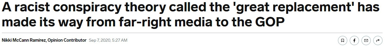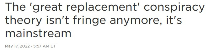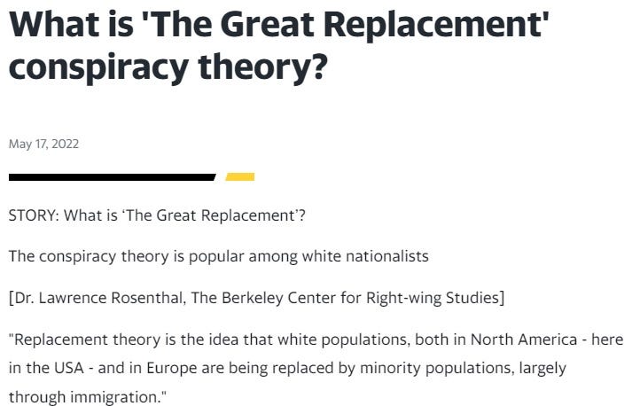“Replacement theory is the idea that white populations, both in North America and in Europe, are being replaced by minority populations, largely through immigration.”