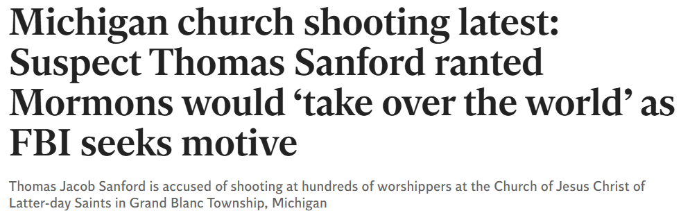 The town of Grand Blanc Township, Michigan, was the site of a horrific tragedy this Sunday, as former Marine Thomas Sanford drove his truck into the Church of Jesus Christ of Latter-day Saints, lit the building on fire, and shot at churchgoers. Four people were killed and eight others were injured in the attack.