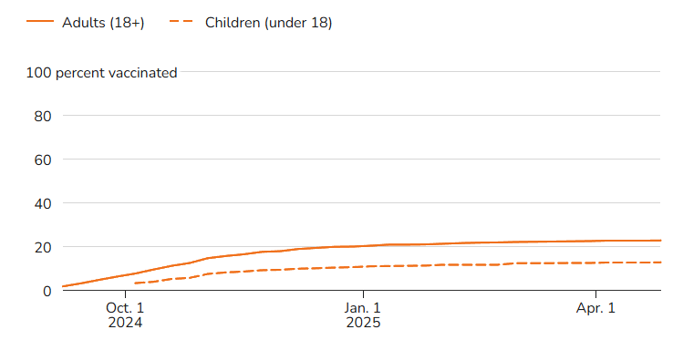 But now the public health agency is reaping the “rewards” of those lies — an almost flatlined “new” covid vaccine uptake (almost certainly clustered around people still getting it “for free”):