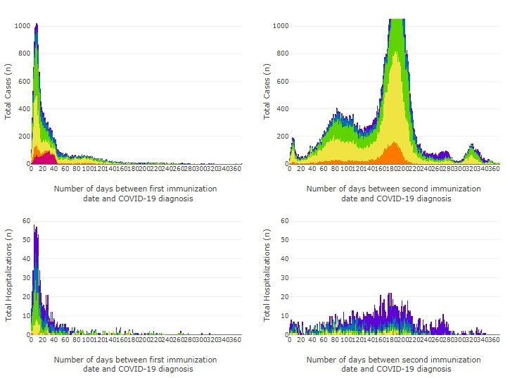 The logic stemmed from the fake “100% efficacy” claims popping up soon after the completion of vaccine trials. However, this was almost exclusively due to a simple data trick — the pharmaceutical companies claimed that you’re only ACTUALLY vaccinated once you’re more than two weeks after your final shot. That allowed them to count all the vaccine failures (left side of the graph) as “unvaccinated” people.