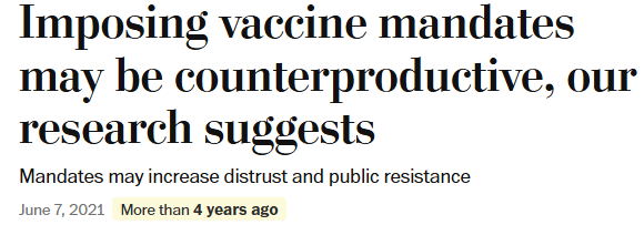 This is a perfect example of the problem. The “experts” NEVER had any data showing the shots prevented infection — BUT THEY ACTED LIKE THEY WERE CERTAIN ABOUT IT. They undertook the most extreme measures possible and limited our rights in a shocking fashion — calling us all sorts of names in the process — AND THEY NEVER EVEN HAD ANY DATA SHOWING IT WAS THE CORRECT MOVE!