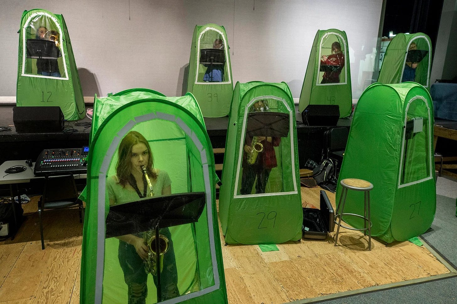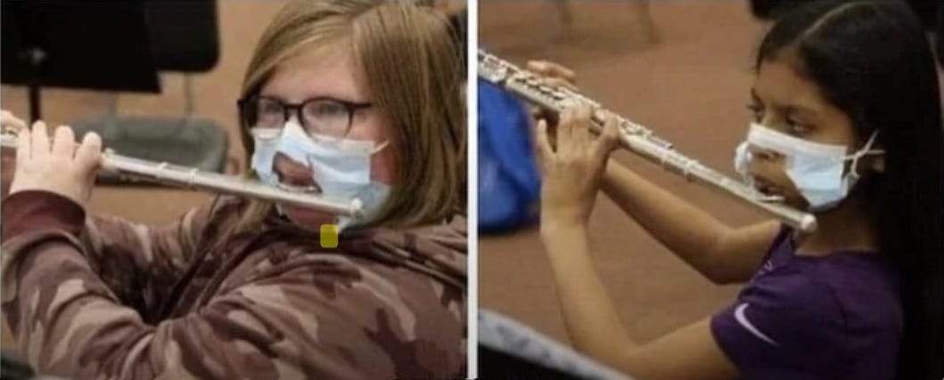 nowadays when I watch a Youtube program and there are masks anywhere, I immediately stop and write underneath why I stopped watching. Unless of course it was that one in France, where everyone is leisurely walking outside, masks on, then going into a crowded restaurant, sit down, take mask off, eat, put mask on and go out again.... I just could not keep from laughing. Just like these flute players with a ribbon of mask... didn't they see the craziness of this?