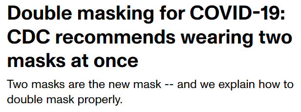 And now we FINALLY have the vaccine! The “experts” have been proclaiming for months that this is the way out of the pandemic, and it’s finally here! This is a great day to celebrate………and recommend double masking, because it turns out one mask isn’t that helpful: