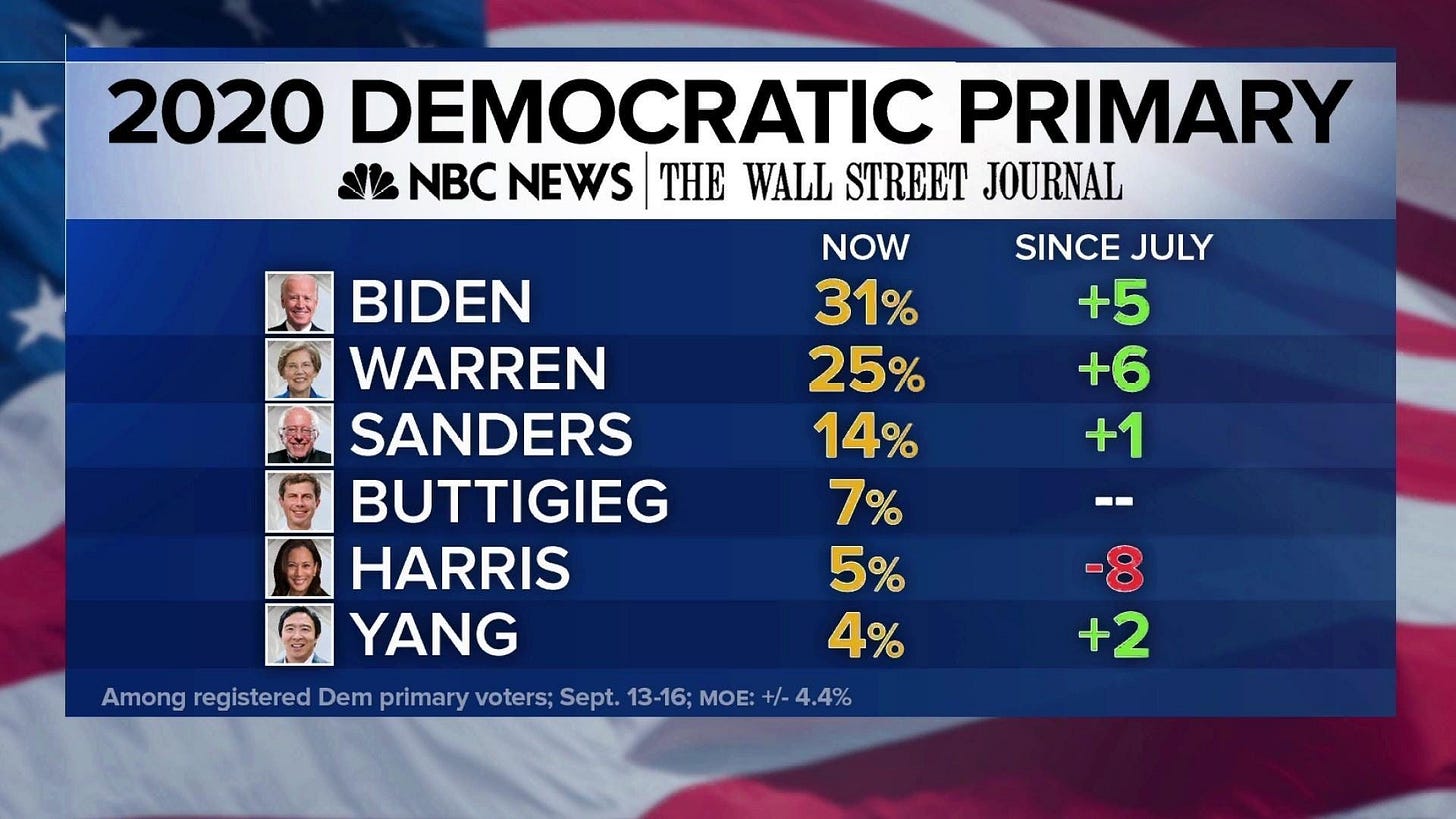 Put another way, from July 2019 to September 2019 — as voters started paying attention to the election — Kamala Harris lost 62% of her supporters. That’s anything but ‘raw talent’.