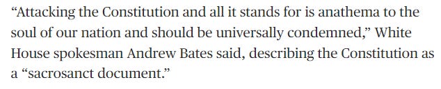 Where is the media outrage that Tim Walz is attacking the ‘sacrosanct’ Constitution? Why are they not calling for the dismantling of the massive censorship apparatus aimed at Americans expressing legal speech — specially if “Super Hitler” is only months away from taking office? If we’re worried about Trump ending democracy, where’s the call for restriction on executive orders? (Reminder — covid vaccine mandates were executive orders. Hard to imagine something less American and more dictatorial!)