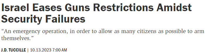 He, and other gun control advocates, fail to mention that the “bad guys” don’t care about the rules and manage to acquire guns anyway — guns which are then used to slaughter the disarmed. We can’t wave a magic wand and make guns disappear — and we shouldn’t even if we could, as we’d simply be reverting back to the strong physically beating up and robbing the weak. Last week’s terrible massacre in gun-control-heavy Israel is a chilling reminder that government can’t actually keep you safe when the shit hits the fan. At least the country is finally starting to understand who the first line of defense is: