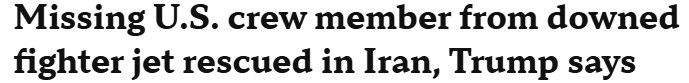 First, the elephant in the room — the ongoing war in Iran. The good news is that after being shot down over southern Iran, our missing airmen have been saved via an impressive rescue mission!