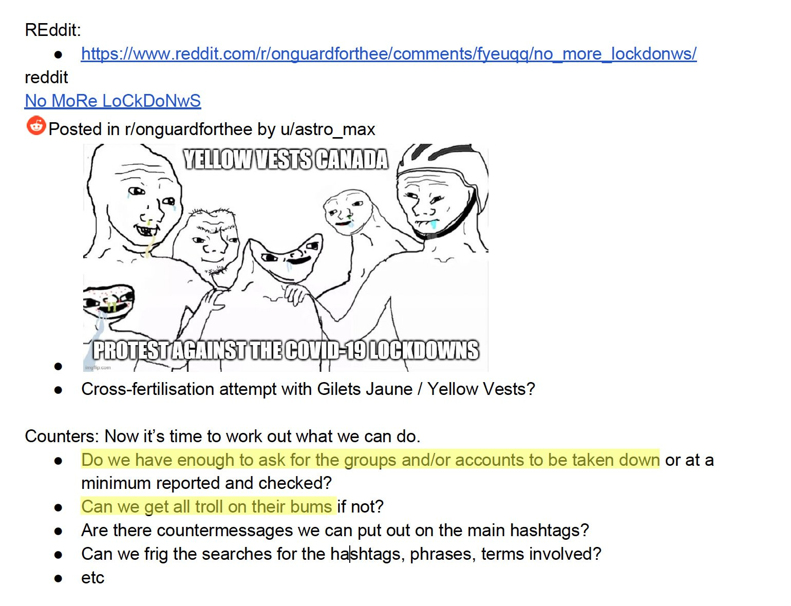 While we’re on the subject, what are the odds groups would “sockpuppet and troll” online but not at the actual protest? After all, infiltration and encouragement is standard operating procedure…..
