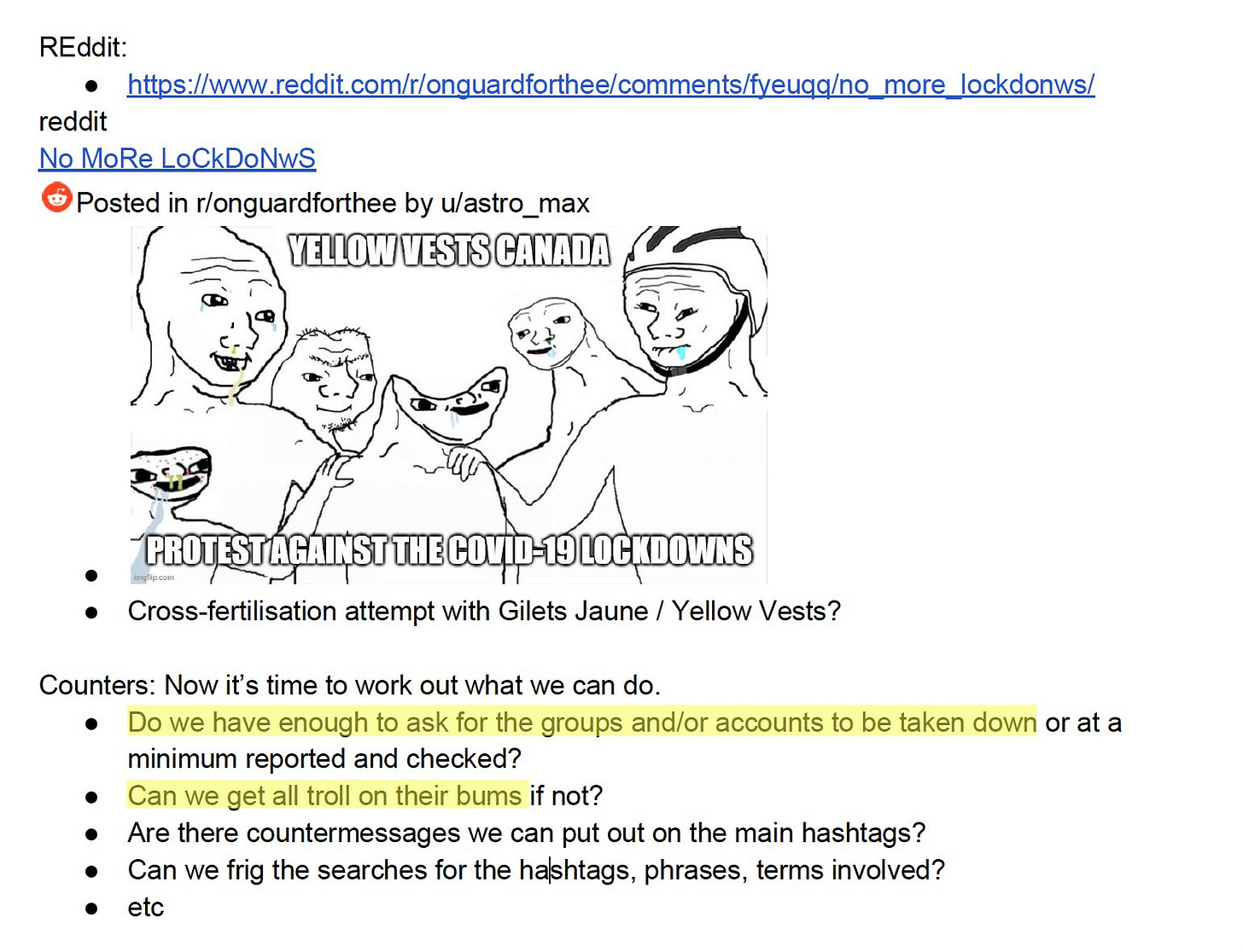 So the CTIL manipulated algorithms with mass action — sort of like how Ron Paul won every online poll for 8 years due to RonPaulForums.com — but with this mass action leading to account de-amplification or deactivation, as well as removal of completely true (and/or hilarious) things.