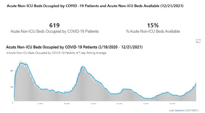 Does Lori Lightfoot think that covid hospitalizations are going to TRIPLE in the next couple weeks? That would put them at 1,800 or so hospitalizations, about 600 more than their previous peak in April 2020, when acquired immunity was lowest and there were no vaccines! (1800 would be just about the top of that little box on the right)