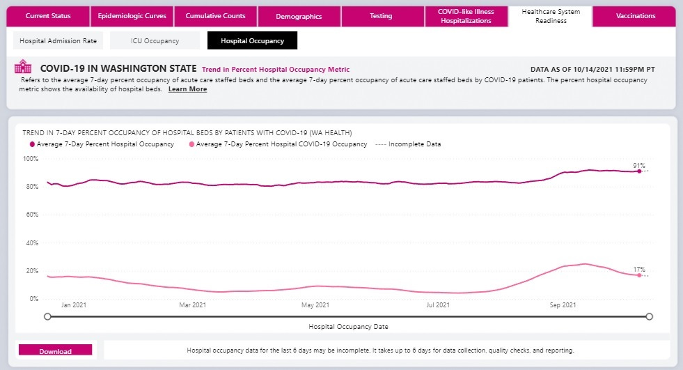 First all, moving the goalpost here was an admission that kids weren't much at risk for going to the hospital for covid. Of course Inslee and the Idiot Brigade never once mentioned that, later mandating masking at school and all sorts of other anti-kid rules. Moving the goalposts here had the effect of removing 5,500 beds from our supply. All of a sudden instead of 60% we were running at 83% and 'failing'. Note that actual hospital usage remains flat, and at the end you see the number of available beds falling. This is because of Inslee's stupid vax mandate. However, since that is inconvenient, we must move the goalposts again, to....