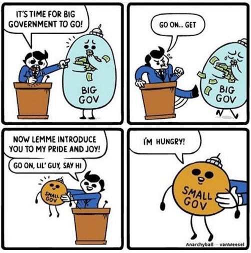 Now everything political is a fight to the death, because it’s IMPERATIVE that ‘the other guy’ doesn’t gain control of this bureaucratic juggernaut and turn its eye upon you like an even scarier Eye of Sauron. After all, that other guy might sic the IRS on you, or maybe the FBI.