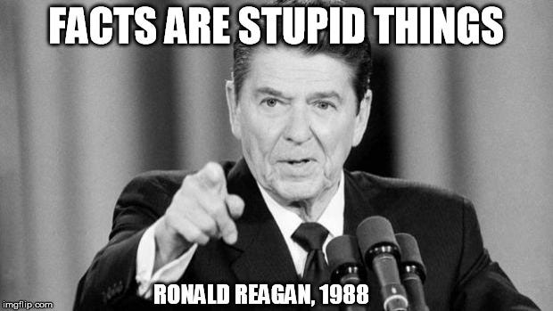 First up, Ronald Reagan botches John Adams’ quote about facts being stubborn things.