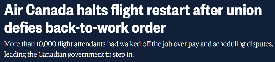 Finally, a story from Canada, where striking flight attendants were ordered back to work by the Canadian government.