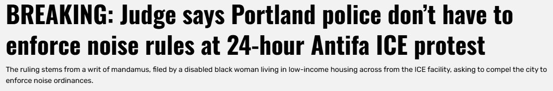 A Multnomah County judge ruled on Thursday that the Portland Police Bureau does not have to enforce the city's noise ordinances on protesters involved in the 24-hour Antifa occupation outside the US Immigration and Customs Enforcement (ICE) facility in South Portland.