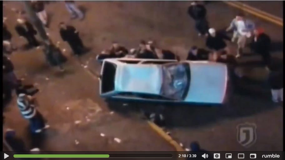 This turned out to be a huge mistake. Allowed to run free in the streets, emboldened rioters smashed windows, overturned cars, set fires — and started attacking people seemingly at random. Take a look at some video of the incident from “Most Shocking”: