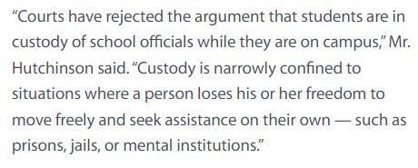 So even though the state forces your children to be in school, it maintains that it has no duty to keep those children safe. When tragedy strikes, the government investigates the government and finds the government did nothing wrong.