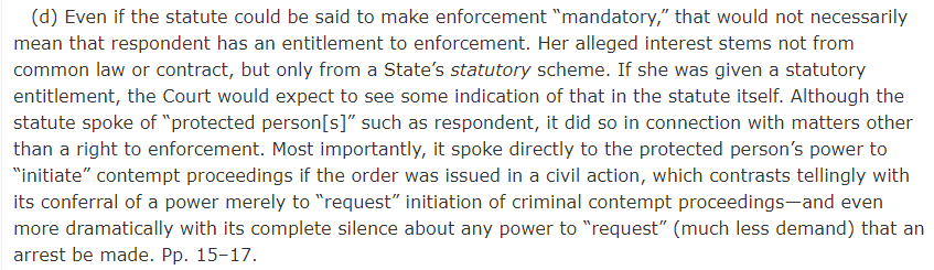 So let’s recap quickly: the State of Colorado issued a restraining order against Simon. Jessica informed the Castle Rock police MULTIPLE TIMES that Simon was violating the order. Despite the “SHALL ARREST” wording of the restraining order, police took no action against Simon. But SURELY the restraining order creates the “special relationship” that creates the duty for police to intervene, right?