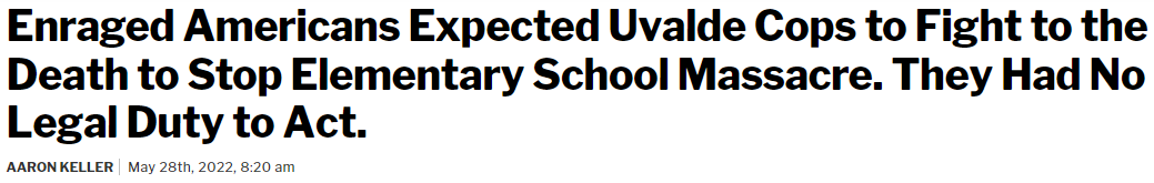Uvalde, Texas provides another crystal-clear example. In this case, police stood outside an elementary school classroom for nearly 90 minutes while Salvador Ramos was in the process of killing 19 children and two teachers. While frantic kids called 9-1-1 and begged the police to save them, the cops milled about and did nothing — even when they heard gunshots behind the door.