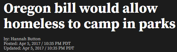 This is only one view of one park of the encampment, which runs for maybe a half-mile. (To get the full scope of the problem, click the picture to view the KGW story, which includes full video.)