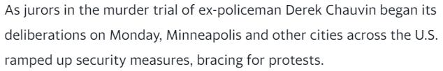 Changes the narrative a little bit, don’t you think? Sure sounds like jury intimidation — in front of a jury that’s already fearful about their roles in the trial. This is extremely reminiscent of the Derek Chauvin trial, where the jury had a security escort to and from the courtroom. And everybody knew what would happen if Chauvin was found not guilty.