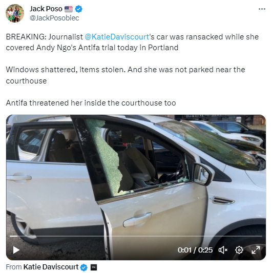 Think that Portland wasn’t ready to “start up” again if this trial didn’t go their way? Check out what happened to the car of the journalist covering the story, Katie Daviscourt: