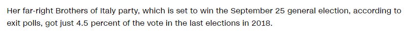 And in a wonderful ‘Fuck you, I won’t do what you tell me’, Italy delivered a huge victory to Meloni, setting off a predictable round of articles comparing Meloni to Mussolini. (Maybe this is one of ‘the tools’ that Ursula von der Leyen was talking about? The media certainly IS made up of tools.)