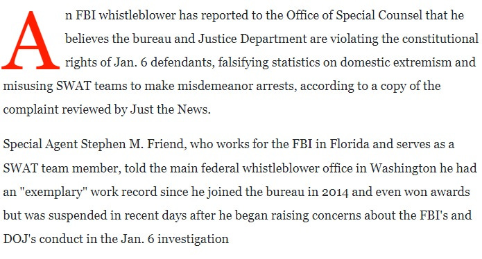 Shades of doctors being fired for speaking out against covid protocols, here we see the elimination of anybody in the FBI who dares speak out about the treatment of January 6th prisoners. If you think the agency is bad now, just wait until they drum out any of the remaining good apples.