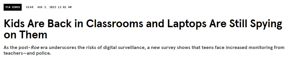 Also disquieting are the accounts of monitoring software breaching students’ after-school lives. One associate principal I spoke to for this story says his district would receive “Questionable Content” email alerts from Gaggle about pornographic photos and profanities from students’ text messages. But the students weren’t texting on their school-issued Chromebooks. When administrators investigated, they learned that while teens were home, they would charge their phones by connecting them to their laptops via USB cables. The teens would then proceed to have what they believed to be private conversations via text, in some cases exchanging nude photos with significant others—which the Gaggle software running on the Chromebook could detect.