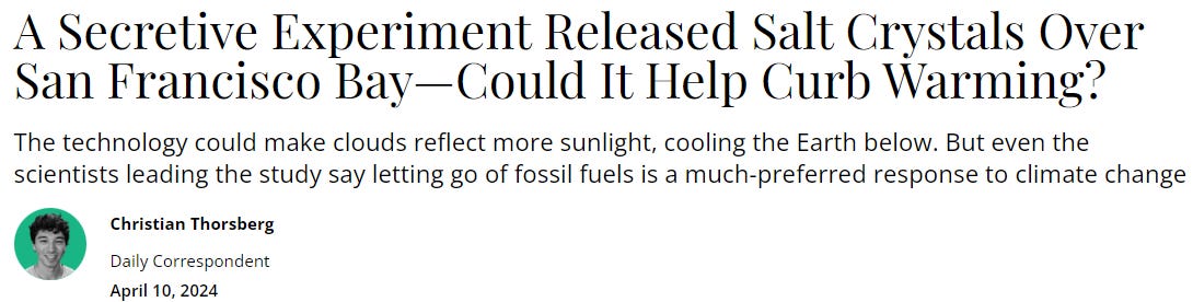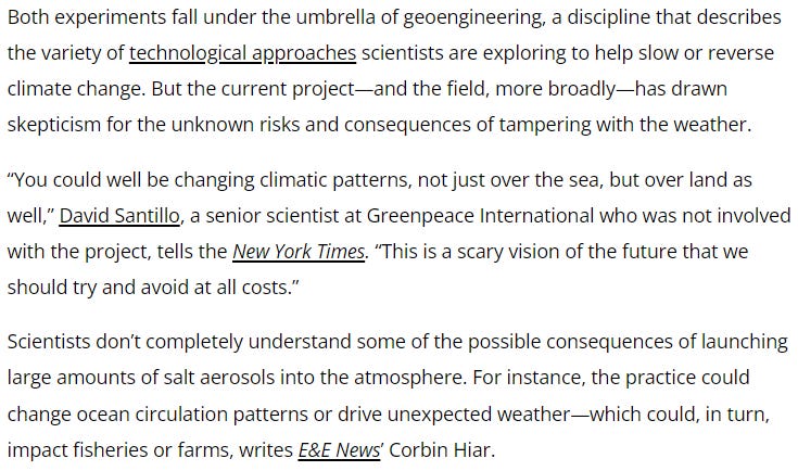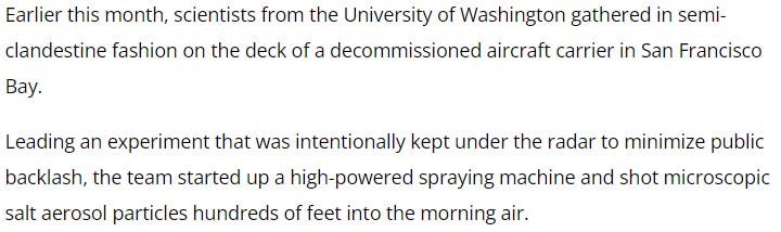 A little later in the article, the author admits these types of risky experiments are fairly common and fall under the label ‘geoengineering’.