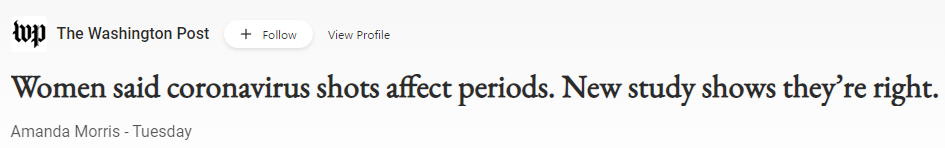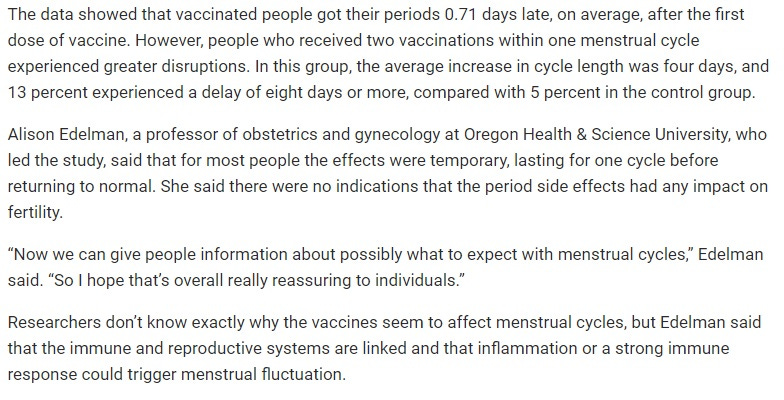Hopefully dodging the Substack maintenance today to bring you an important update on covid misinformation. I’ve previously touched on how government itself spread misinformation while cracking down on ‘misinformation’ — like that the vaccine affects the menstruation of women. This narrative was prevalent even through the start of this year.