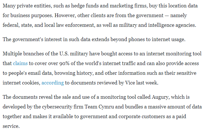 This is government hoovering up whatever data it can, regardless of the Constitutional rights of the citizens who end up being thrown into the database. Of course, government argues that users ‘accept’ such surveillance when they give permission to an app — an extremely dubious assertion. Who in their right mind thinks that wanting to play a game or two of Candy Crush also waives your most basic rights as an American?