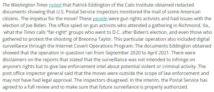 But just in case you thought this was limited to government/corporate ‘partnerships’, we’ve also learned that the US Postal Service was spying on ‘undesirables’