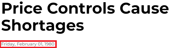 That’s because price controls don’t do anything but distort and eventually break the free market. If it costs $2 to make a loaf of bread you can only sell for $1, how long do you keep selling bread at a loss before you go broke? (Not long, unless you’re government.)
