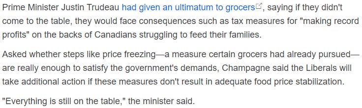 No doubt when the shelves are empty in both Canada AND Chicago, the “leaders” will blame others and come up with even bigger and dumber ideas to fix the problem — and the descent will continue.