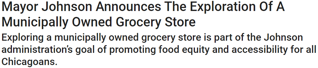 These are exactly the kind of people who would attempt to open a government-owned grocery store. Reality doesn’t matter, the narrative is everything! The “leaders” don’t want to talk about businesses fleeing the city due to crime, so instead they swoop in to save the city from the consequences of their own actions.