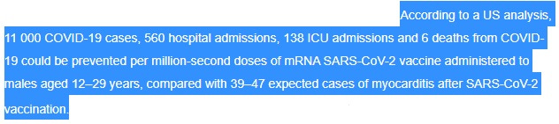 And in doing so, we create 39-47 cases of myocarditis (meaning roughly 20-25 deaths).