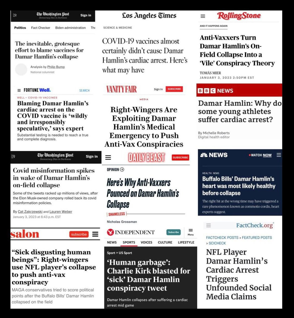 And while we don’t know for certain what caused Hamlin to collapse like so many previously healthy athletes before him, the usual suspects are ABSOLUTELY POSITIVE of what it WASN’T.