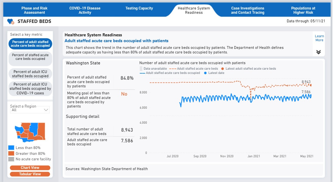 Note that Miller isn’t even alleged to actually have hurt any of his patients, his ‘crime’ was being right when the established authorities were wrong. For funsies, here’s Washington’s hospital utilization chart with data up to May 11, 2021 — just one day after Miller spoke out against mask mandates and social distance learning: