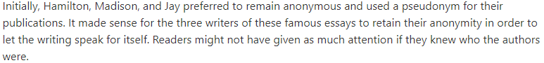 In our country’s history, we have a perfect example of this dynamic: The Federalist Papers, which were published anonymously in newspapers around the country to rally support for the US Constitution.