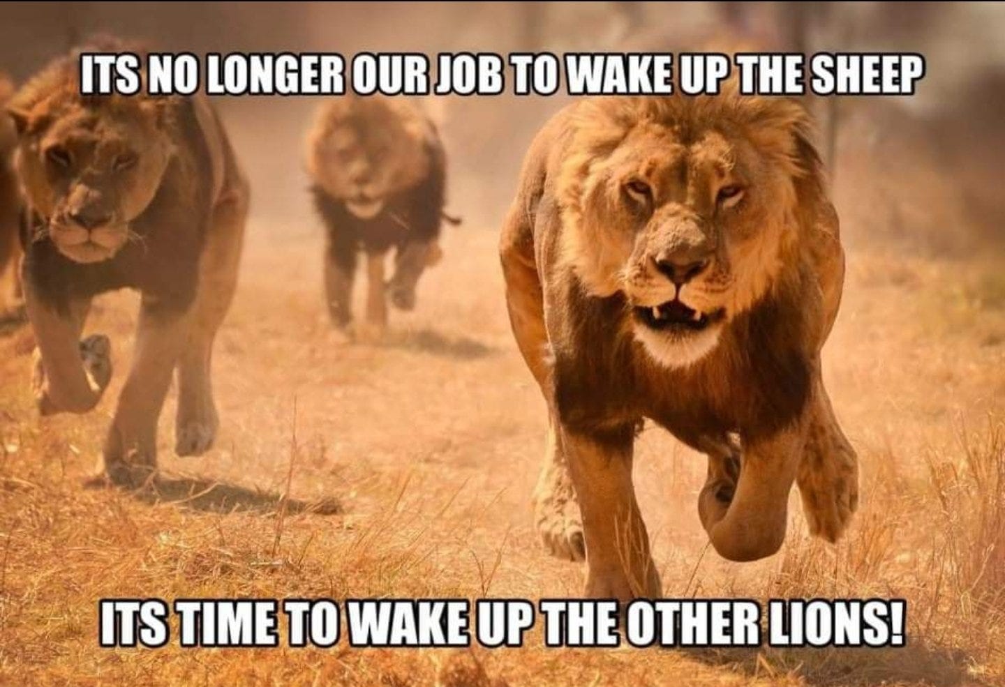 The most startling observation has been the ease with which most of the world acquiesced to medical tyranny which produced the oppression. Human culture has changed. We now prefer safe spaces to independence, welfare to self reliance. We have become wards of the state, Marxists without the label. That ingrained indoctrination will be difficult to overcome. No matter how many lions rise up, most people will remain frightened and submissive, probably more so as conflict approaches. We're not lions to them, we're ultra Maga -- the enemy.