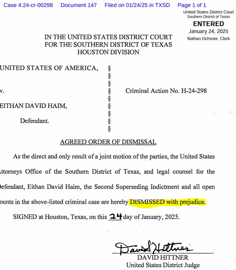 Another of Trump’s pre-election promises was to halt the lawfare employed by the Biden administration against its political enemies. Trump recently made good on this by pressing for the dismissal of the case against medical whistleblower Eithan Haim — who finally got his miracle: